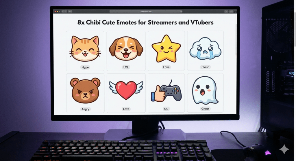 - 8x Chibi Cute Emotes for Streamers and VTubers