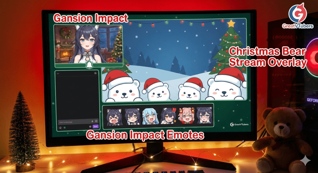 At GreatVTubers, we offer the Gansion Impact Emotes for Twitch Stream and the Christmas Bear Stream Overlay to give creators tools to build engaging, expressive, and seasonal stream branding.