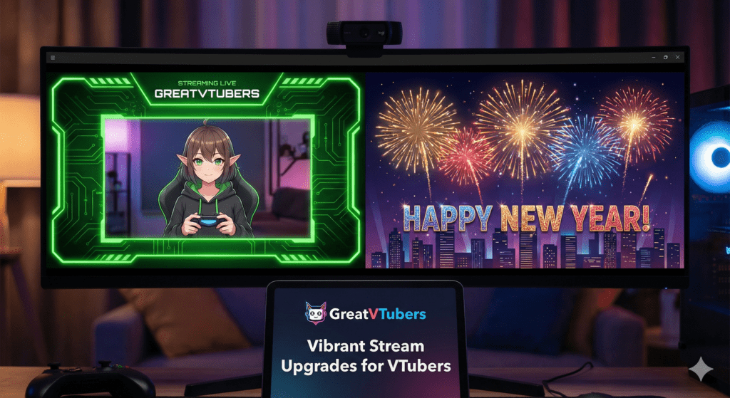 Green Gaming Overlay and Happy New Year Firework Animation — Vibrant Stream Upgrades for VTubers | GreatVTubers